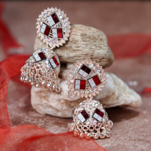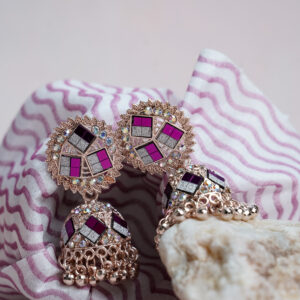 At Ifqara, we create jewelry to celebrate you. These pink jhumkas, with their delicate design and sparkling details, are made to reflect your beauty and uniqueness. You are the reason behind every piece we craft.
