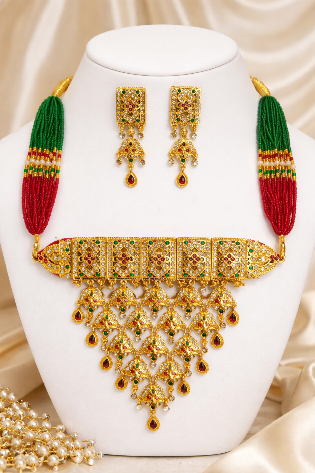 Ethnic Gold Tone Kundan Multicolor Beads Necklace Set for Women & Girls